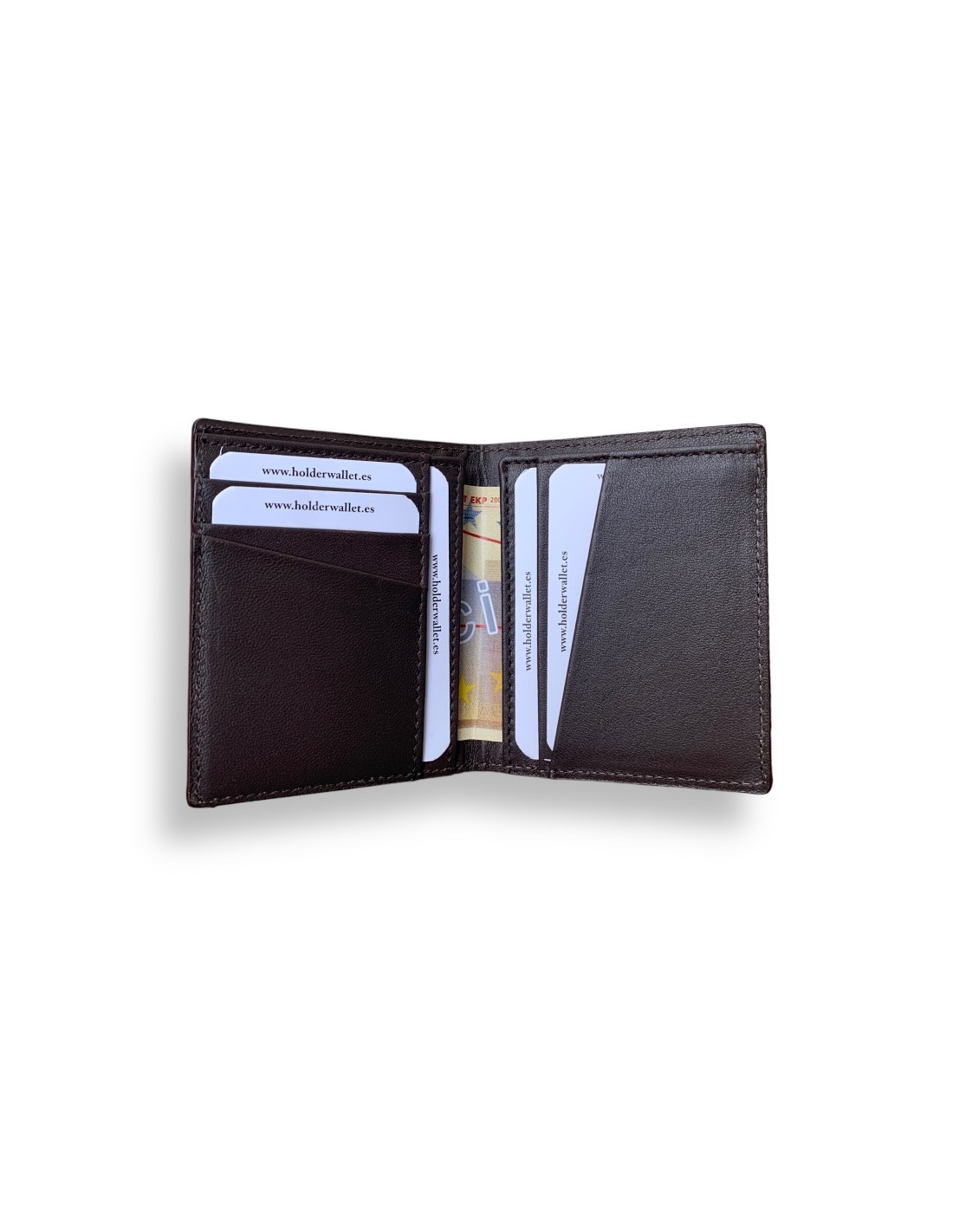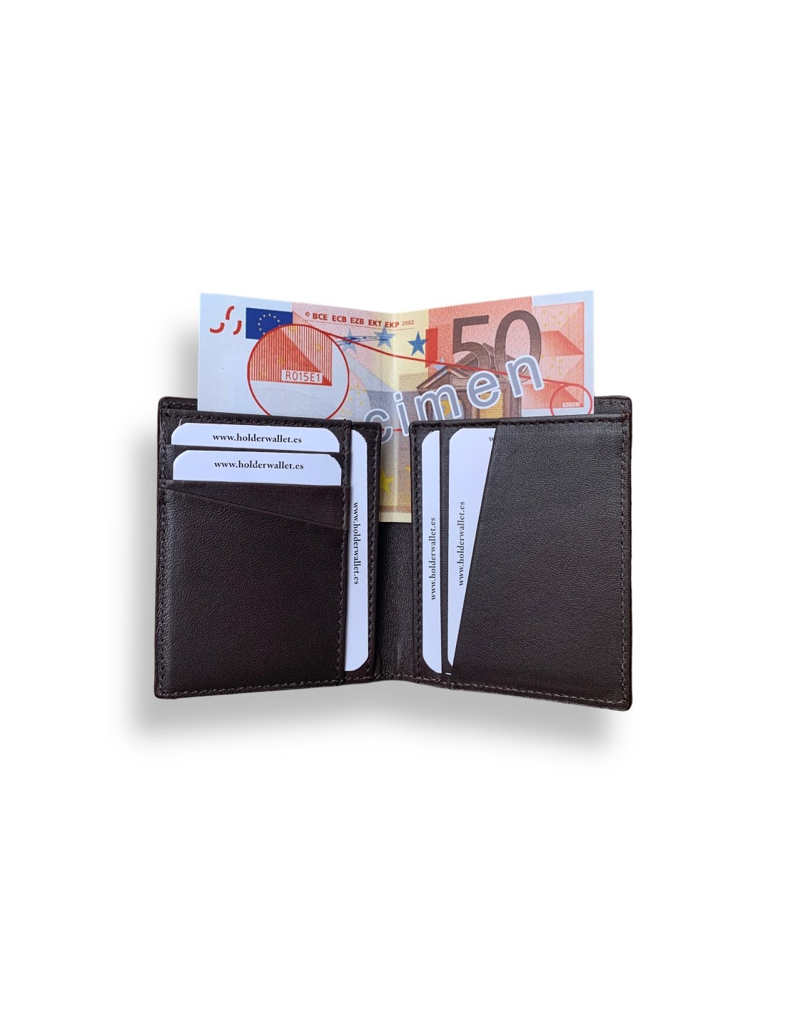 CARTERA SKINNY SUPER DELGADA COCO MARRÓN 100% PIEL