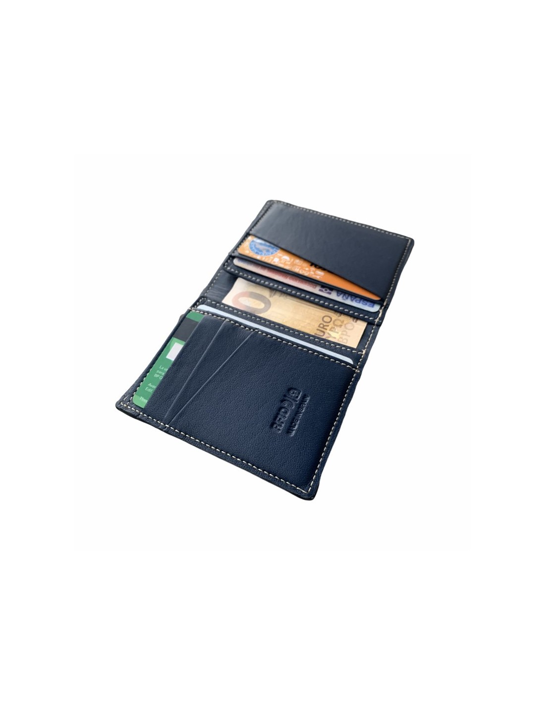 -Ultra slim wallet, made of 100% leather very soft to the touch, its innovative design is based on the reduction of the thickness of the wallet, to carry it with ease in any pocket.