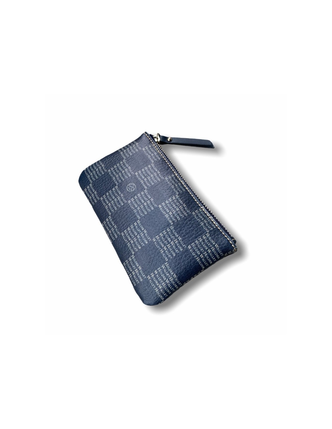 -Flat purse made of eco-sustainable canvas and leather. In its interior we find a ring to hang our keys, capacity for cards, coins and banknotes.