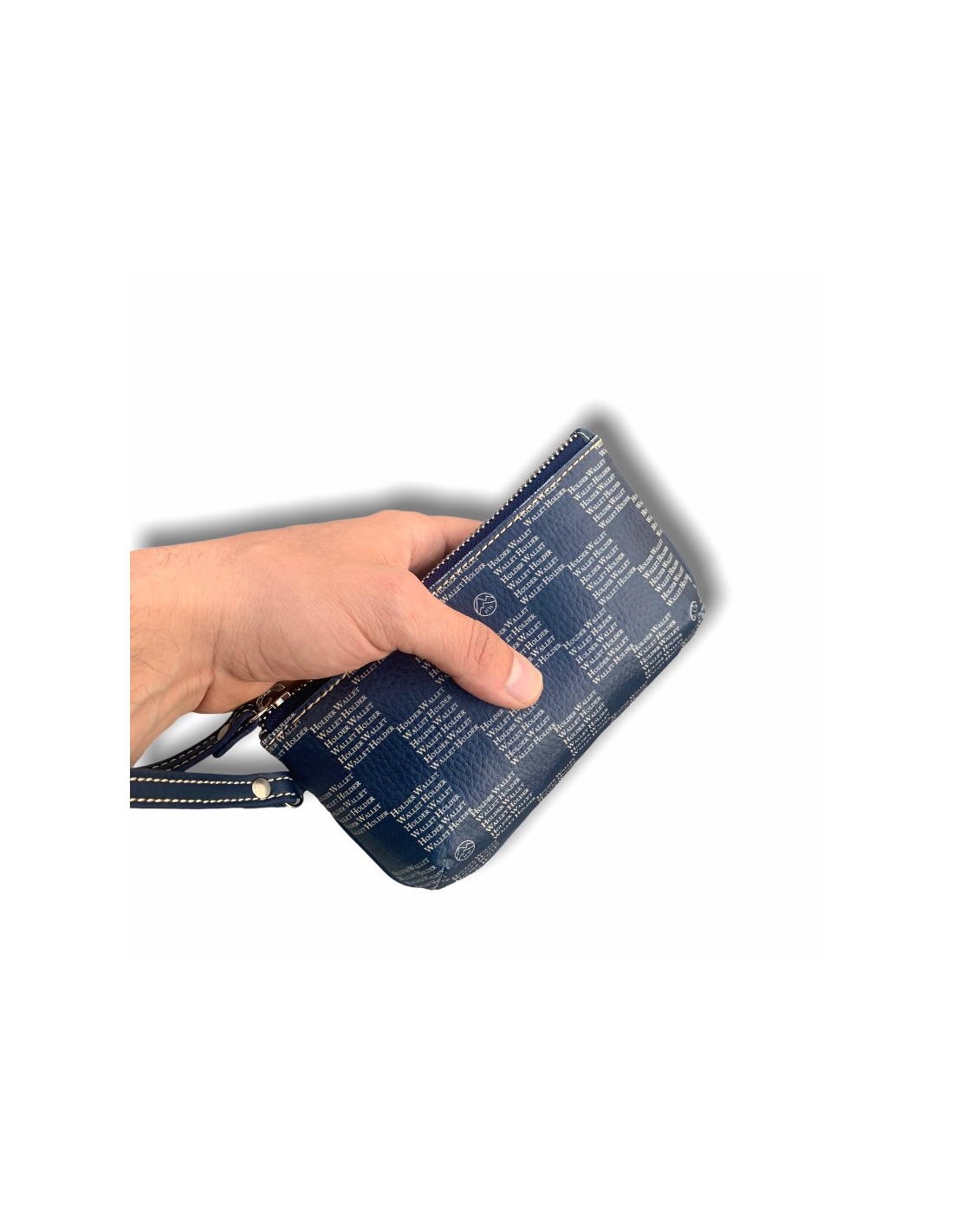 •Monedero con asa de mano fabricado en lona eco sostenible y piel , consta de una cremallera principal para el acceso a su interior , siendo esta mas ancha por su fondo para así poder introducir más cosas con facilidad.